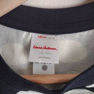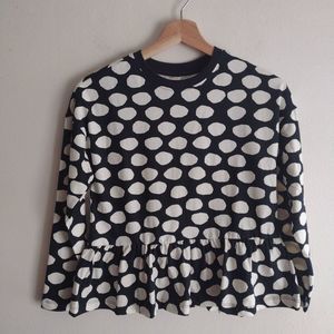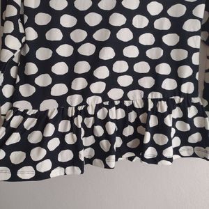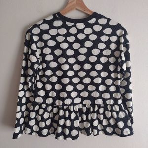 Hanna Andersson Kids Polka Dot Peplum Top Long Sleeve Size 10US Black/White