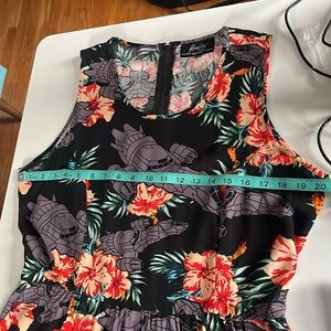 Adorable dress for any Firefly fan! Has zip back, pockets (!), and elastic on back of waist. tag size is 3X, but see measurements in photos for specific sizing. Skirt measures 22” from waist to hem and approx 40” from shoulder to hem.