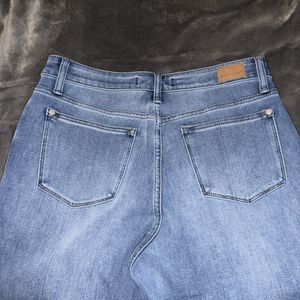 Judy Blue Women's 7/28 Distressed Stretch Boyfriend Fit Medium Wash Jeans