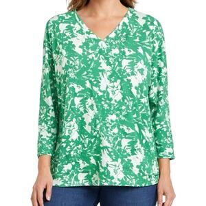 Talbots Petites Sz 10P Black Pink Floral Blouse Shirt Top Short Sleeve Business