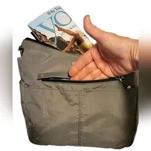 Baggallini Crossbody, EUC (no visible wear),in a light khaki brown/green color, clean inside and out, adjustable crossbody strap, outter zipped secure pocket for keys, inner zipped pocket for coins and CC pockets inside, four separated pockets on the outside for keeping your stuff organized (SOOOO many pockets!!!)