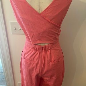 J. Crew Wrap-Tie Jumpsuit Bow Coral