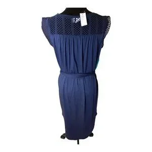 Gap Dress Womens Size XS Navy Blue Crochet Waist Tie Short Sleeve Knee Length