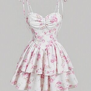 Beautiful dress, with boning under the bust, a faux corset hook and eye look down the middle of the chest. Ribbed elastic waist ( it doesn’t not allow for stretch it is sewn over the dress). Adjustable straps. Dress is on overall great condition free from any, holes, stains or fading. It does however have a tiny rip in the wearers left underarm (as pictured) and a slight run in the wearers right side (as pictured) neither of these tiny flaws affect the wearer of the dress and are hardly noticeable. This dress is perfect for a night out, date night, wedding guest or Valentine’s Day.