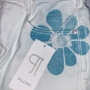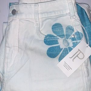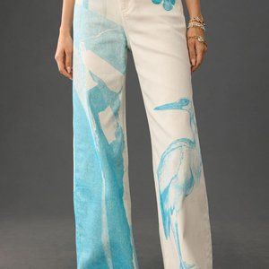 Description: Unique art inspired jeans with images of birds and flowers.