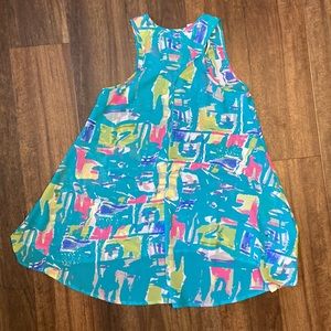 Get ready for spring break with this colorful swim suit cover up or beach dress that features a sheer material. The back has a small slit detail which will hit at about bra line ( see picture).