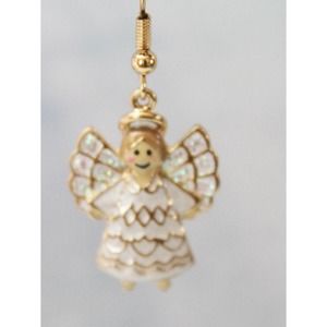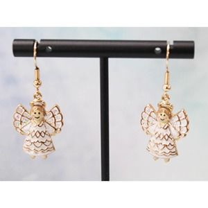 These very cute angel earrings measure 0.75 inch long and 0.5 wide.