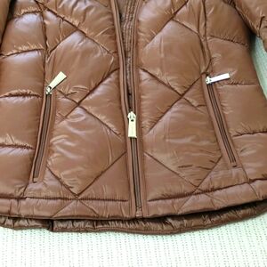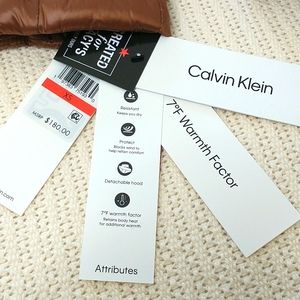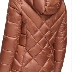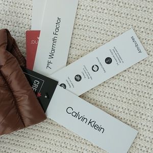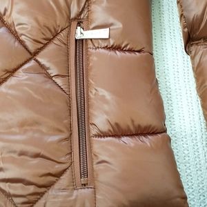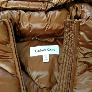 A cozy puffer coat with a shine finish. Calvin Klein. 7 F warmth factor. comfy lightweight coat new with tags . color golden brown 🤎