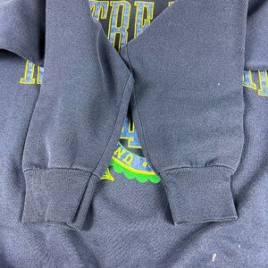 VTG NCAA Notre Dame Fightin Irish Sweatshirt Large Blue Faded Stained Crewneck