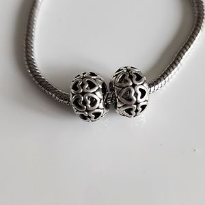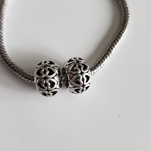 Pair Heart Spacer Charm ffor European Style Bracelets Multi Fits Pandora
