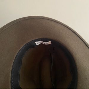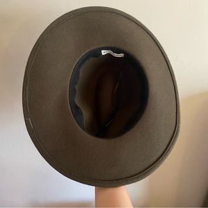 Artisan NY olive green hat with brown band. Tried on but never worn. Casual, boho, retro, elegant, sophisticated, chic, trendy.