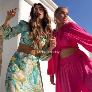 With opening pleated detail and closure spaghetti strap long ballon sleeve side hidden inseam closure