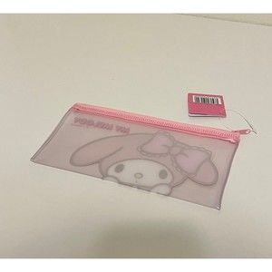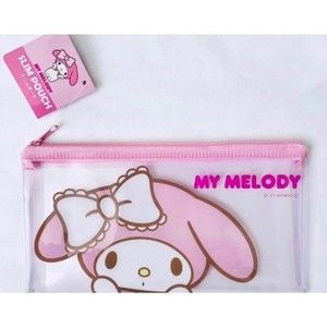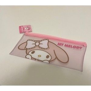 SANRIO MY MELODY ZIPPER POUCH BAG. This bag features super cute MY MELODY in a see through pouch and reads “ MY MELODY “ It has a beautiful pink zipper lining. This pouch is great for FACE MASKS • MONEY & CHANGE • PENS & PENCILS • POST IT NOTES • MAKEUP • CANDIES • Q TIPS & BAND AIDS • OR YOUR FAVORITE ACCESSORIES • SIZE 8 1/8” inches 4 1/4” inches