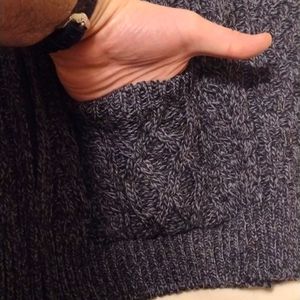Unworn. Charcoal Grey. Made in Ireland. Finest Warm Weave 100% Merino Wool. Incredibly Warm and Soft. Distinctive Knit Patterns and Details. Stand Up Collar. Front Pockets. Men's XXL Wears Like American XXL.