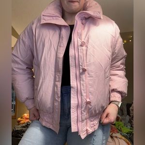 VTG mountain Goat light pink cropped puffer down ski jacket retro