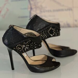 Pre-loved in excellent condition. Minor wear at soles and throughout. No creases or scuffs except minor defect on tip of left heel as shown but minimally visible. Please ask all questions or requests additional pictures as needed. Includes dust bags.