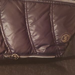 Nice Michael Kors light weight black jacket. Honestly, I wore 2 times, but the arms are a bit tight. I would think this would fit more like a medium.MK hardware is like black stainless. No rips or holes, smoke-free home.
