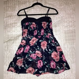 Target floral, corset romper with pockets