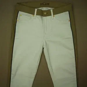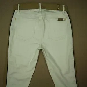 7 For All Mankind Skinny Jeans Women's Size 27 Faux Suede Trim White Denim