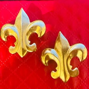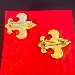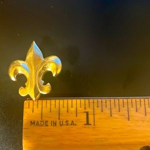 Two Vintage Gold Metal Fleur de Lis Lapel Pins Bundle. Vintage. Wear on your collared blouses for a unique look or cluster the two on your lapel of your blazer or decorate your hat! Look Royal in these two gold tone Fleur de Lis Lapel pins. These are vintage pins so there are pre-lived and may have some wear. The pins have a good functioning clasp on back. Approximate dimensions: alittle over 3/4 inch long x 3/4 inch wide.