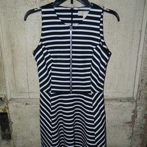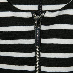 Womens Michael Michael Kors Front zip Striped Dress - Flare Color is black and white Size 4 Nice preowned condition Pit to Pit 17" Total length 35" X-40