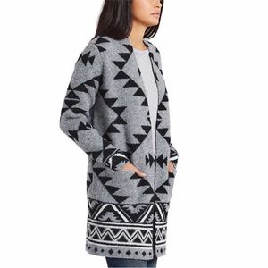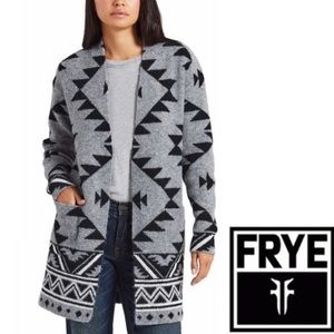 Frye Cozy Open Front Luxe Yarn Jacquard Southwestern Patterned Cardigan Size XL