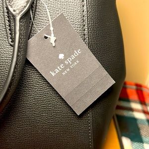 Kate Spade ♠️ New York satchel bag with shoulder strap included. It is a black refined grain leather Kristi bag. There are 2 interior pockets inside on one the front and 1 large zippered pocket on the back. The interior is secured with a zipper closure. The bag is 9” tall, 12” at the bottom width and 11”at the top. There are 2 snaps on the right and left to allow for the bag to open wider if needed. The hardware is gold and still mostly wrapped from the factory. In the photos is the only time it has had the paper removed. It will be sold in a dust bag that it is always kept in for storage.