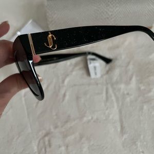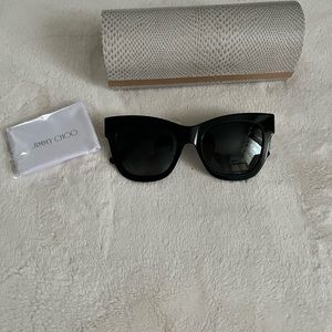 Gleaming goldtone logos add iconic Jimmy Choo shine to full-coverage sunglasses with a timeless square silhouette.