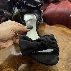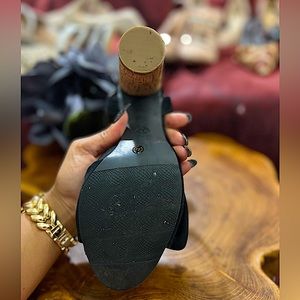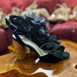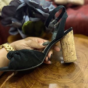 Black Suede Cork Heeled Tinsley Sandals by Worthington