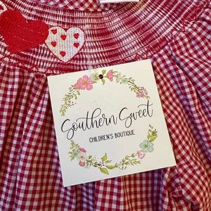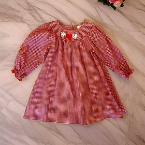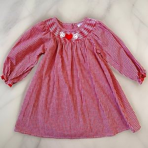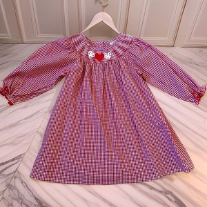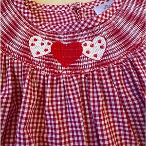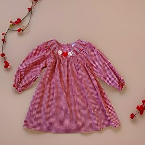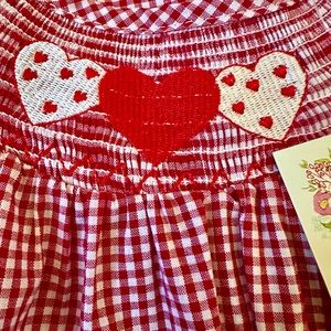 Girls Valentine's Red & White Gingham Smocked Heart Embroidery Dress Brand New