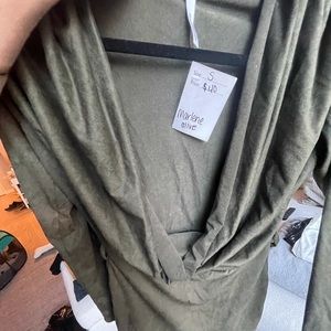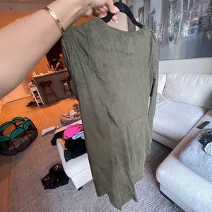 Low cut long sleeve faux suede feeling dress. Never worn. Loops for a belt so you can wear a belt with it!