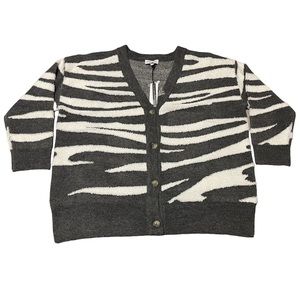 Michael Stars Charcoal Combo Nell Cardigan Zebra Thick Sweater Size 2X