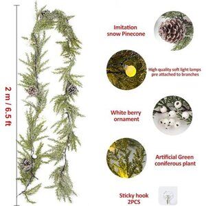 Christmas Garland Decoration: This green garland decoration is suitable for any place in your home! Our Christmas Garlandis 6.5ft (78in) long with soft white LED light strings and pine needles, pinecones and red berries.For Christmas, you can buy multiple combinations to better meet your needs.