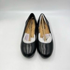 Softwalk women's Sonoma black leather round toe ballet flats / shoes.