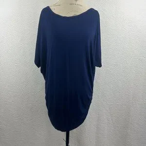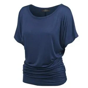 Made by Johnny Women's Blue Short Sleeve Boat Neck Dolman Top Side Shirring