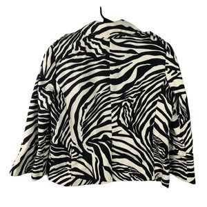 Rafaella Womens Black Zebra Animal Print Jacket Size Large 3/4 Length Sleeve Cot