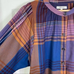 Madewell Plaid Button Down Oversized Peasant Top size Small