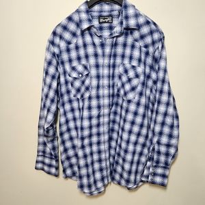 Wrangler western mens pearl snap button down plaid print shirt szxxl