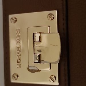 Beautiful Michael Kors Handbag. In excellent condition, soft leather, inside clean, MK name on metal hardware. Please view photos. There's some wear on clap closure. Length 13.5", height 11", width 5"