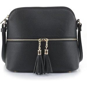 Lightweight Medium Dome Crossbody Bag Shoulder Bag with Tassel adjustable Strap
