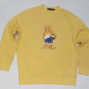 Polo Ralph Lauren Men's 1XB Yellow Summer Bear Crewneck Fleece Sweatshirt New