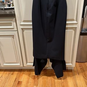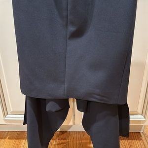 @darkhorsewest the first picture is the front of the dress, it has the piece hanging the back is the last picture it’s straight
