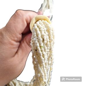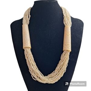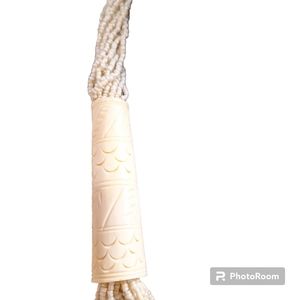 27' cream glass sea bead carved bovine necklace