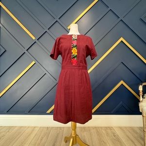 Mexican hand embroidered sheath. Says large but fits a small. It’s a bit too short for me too (5’7)