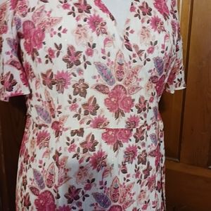 This Sezane wrap dress in the Doha Rose print is striking. The first picture depicts it the best and could still be better! I bought this dress and just hadn't gotten the opportunity to wear it. I have since lost 40 lbs. and now I have to let it go. My loss is your gain. Pardon the pun. It has a v-neck, flutter sleeves, and ruching at the back bodice. Also, a full and flowy skirt. It has a little gold sparkle to it. NWT/Price is firm!