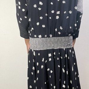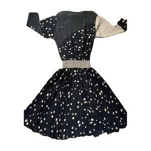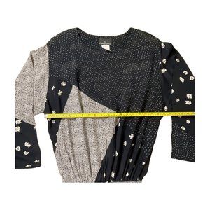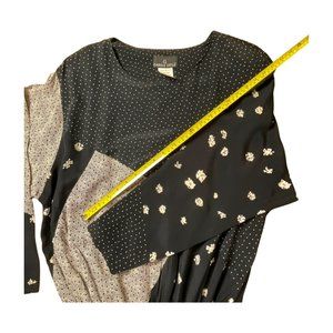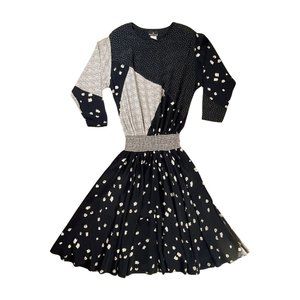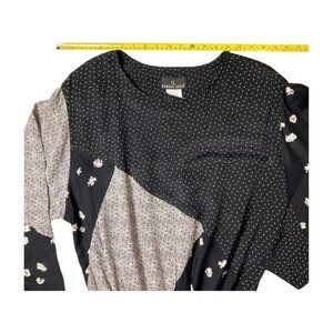 Vintage patchwork polka dot 3/4 sleeve 100% rayon midi swing style dress by Carole Little. Shoulder pads still attached, elastic waistband. Perfect for any season and can be dressed down or up.