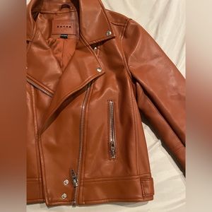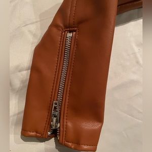 Brown. BLANK NYC JACKET. Faux leather. Pit to pit measurement around 17 inches. Used- like new condition. Clean, no rips or tears. Super cute zipper and button details