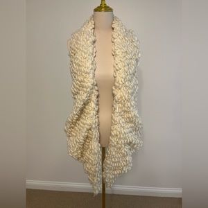 GUC. Wool/acrylic blend open loop vest with suede grey leather backing. Fully lined. Xsmall but fit is oversized.