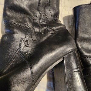 Authentic Harley Davidson Black Zip U Leather Flame Boots with Chunky Heel - 6.5