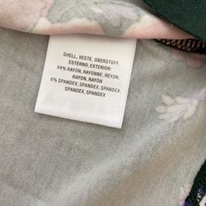 Back Keyhole and Button Closure. Dark Green Background with Botanical Print.